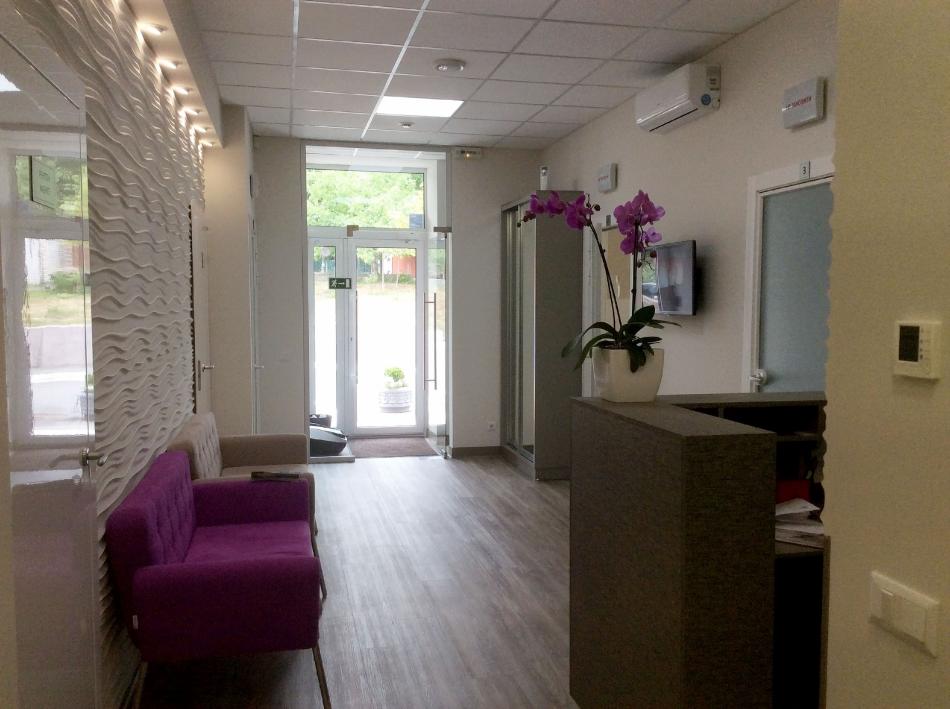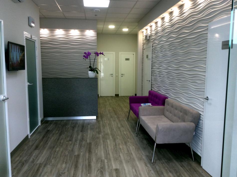 NAYADA облаштувала стоматологічну клініку в Києві. Головними цілями проекту були сучасність і затишна обстановка в клініці. Завдяки перегородок NAYADA-Сrystal, якими оформлена вхідна зона, забезпечена видимість зони очікування з вулиці, що є безумовно зручним для клієнтів клініки. А популярні двері NAYADA-Slim c матовим склом забезпечили легкість в інтер'єрі і, в той же час, приховали те, що відбувається в кабінетах.